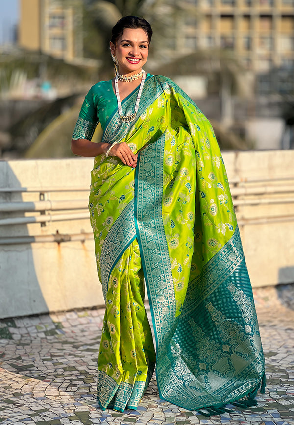 Dark Green Taspa Silk Premium Digital Print Saree For Women