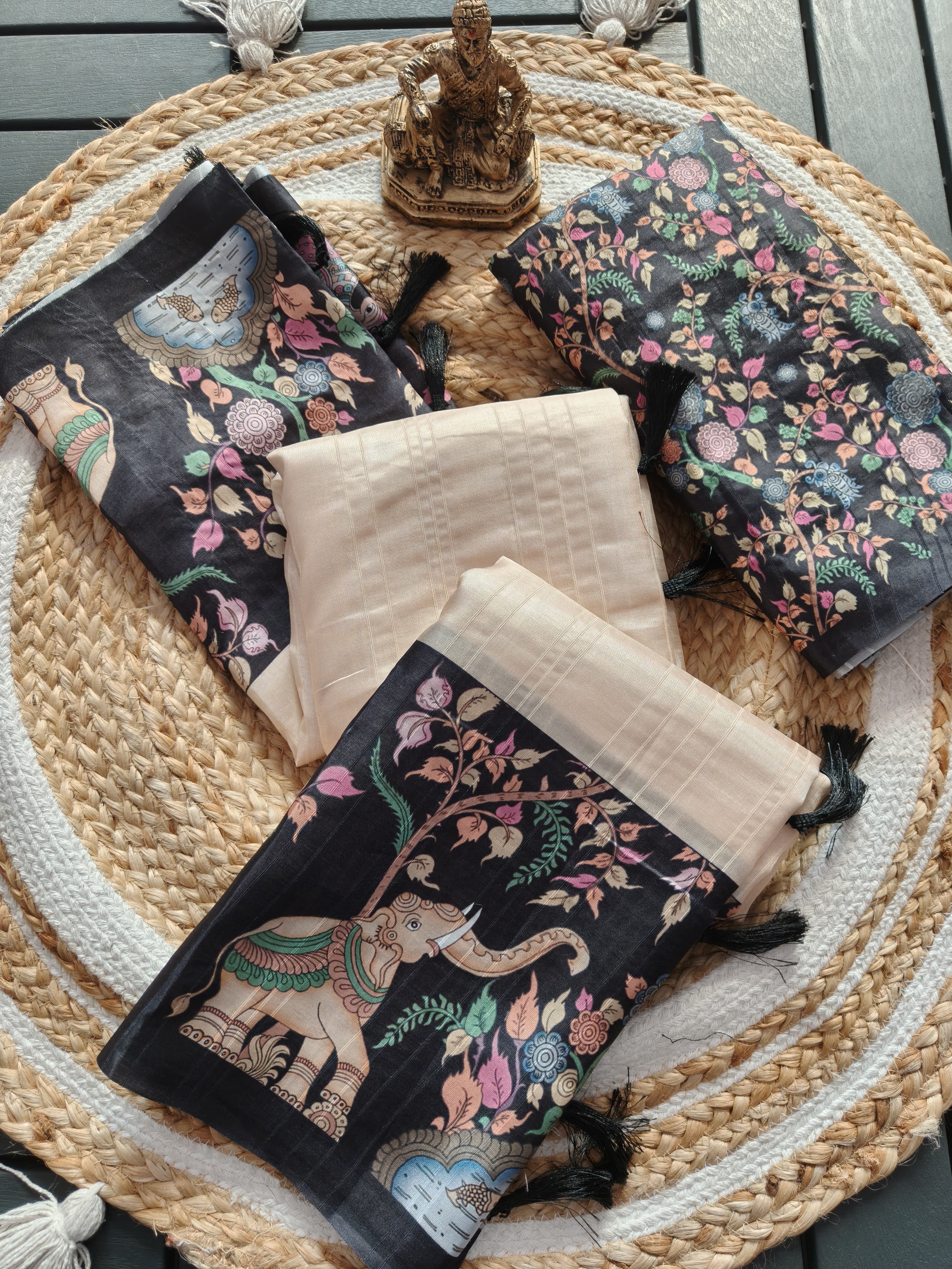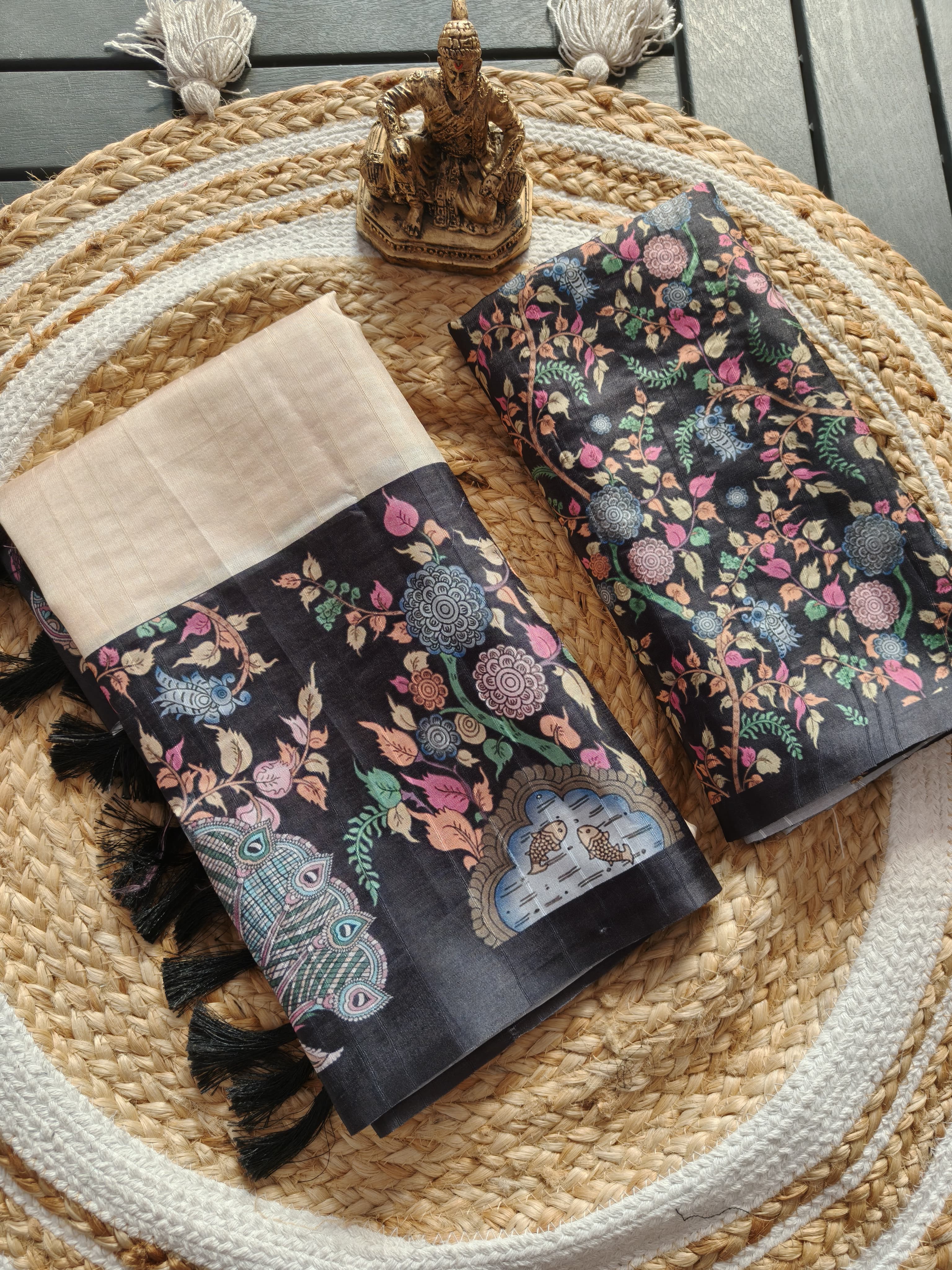 Cream tussar silk saree Premium Digital Print For Women